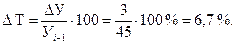 где ΔК – коэффициент прироста уровня, выраженный в долях; ΔУi – абсолютный прирост уровня; Уi-1 – предыдущий уровень. Темп прироста, выраженный в процентах, показывает, на сколько процентов увеличился или уменьшился последующий уровень по сравнению с предыдущим, т.е.