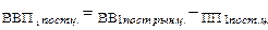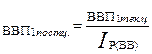 Пересчет ВВП в постоянные цены осуществляется с помощью методов дефлятирования (дефлятирование – процесс устранения влияния цен). Существует несколько методов пересчета в постоянные цены, зависящих от отрасли экономики (при производственном методе расчета) или различающихся в зависимости от элементов конечного использования доходов. Метод двойного дефлятирования состоит в том, что переоцениваются в постоянные цены валовой выпуск и промежуточное потребление. Валовой выпуск переоценивается в постоянные цены при помощи индекса-дефлятора по валовому выпуску (I P(BB)). Переоценка валового выпуска производится по следующим формулам: