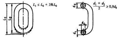 Примечание. d - диаметр каната, в миллиметрах. Цепной строп подлежит браковке при удлинении звена цепи более 3 процентов от первоначального размера (рисунок 1) и при уменьшении диаметра сечения звена цепи вследствие износа более 10 процентов (рисунок 2).