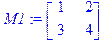 > M1:=<<1|2>,<3|4>>;