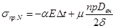 где α – коэффициент линейного расширения металла трубы (для стали α =12·10-6 1/˚С); Е – модуль упругости металла (для стали Е=2,06·105 МПа); Dвн – внутренний диаметр трубопровода, мм; µ - коэффициент Пуассона, для углеродистой стали 0,25-0,3. Принимаем µ=0,25.