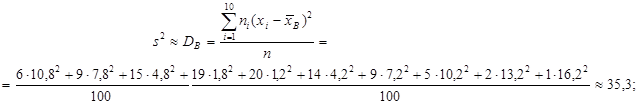 Так как значение n=100 достаточно велико, то генеральную дисперсию оценим по формуле