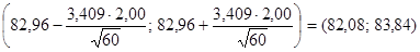 Доверительный интервал для mх равен Т.к. g=0,95, то по таблице tg=t(g;n)=t(0,95;60)=2,00 (См. таблицу 3 приложения). Итак,