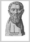 Рис.1.2.1 Зенон Элейский (430-495 до н.э.) и иллюстрация знаментитого парадокса "Ахилл и черепаха". Всего Зенонм было придумано более 40 апорий, направленных против бесконечности и движения.