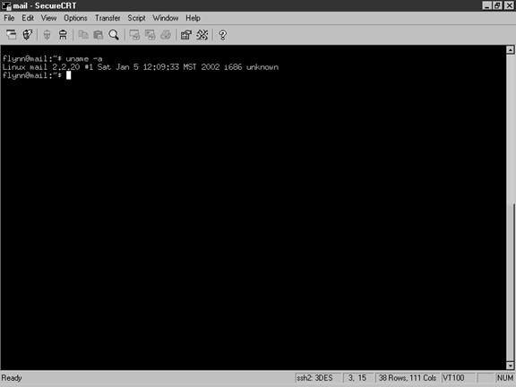 Рис. 3.7. Определение редакции ядра Linux с помощью команды uname-a