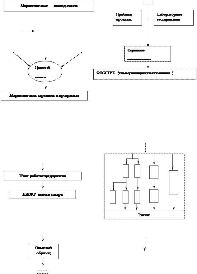 Конкретная реализация маркетинга, т.е. его содержание, наполнение, зависит от характера предприятия, предлагаемого им товара, состояния рынка, намерений и амбиций предпринимателя. Маркетинг может быть простым, даже элементарным, а может быть очень сложным, включающим перспективное планирование продукта, разработку и ведение ценовой политики, анализ не только рынка, но и самого предпринимательства. Чем многограннее деятельность фирмы, тем многограннее маркетинг. Маркетинг как концепция управления производственно-сбытовой деятельностью предприятия имеет ряд общих функций, присущих любому типу управления, а именно: целеполагание (планирование), организацию, координирование, учет и контроль. В то же время эти общие функции, присущие любому процессу управления, дополняются специфичными для маркетинга функциями (рис.25): 1) изучение среды маркетинга; 2) комплексное исследование рынка; 3) анализ и оценка производственно-сбытовых возможностей предприятия; 4) разработка маркетинговой стратегии и программы; 5) осуществление товарной, ценовой, дистрибьюционной (сбытовой) и коммуникационной политики; 6)формирование структур маркетинговых служб; 7) контроль маркетинговой деятельности и оценка ее эффективности. Комплексное исследование рынка охватывает следующие важнейшие направления: 1) изучение маркетинговой среды; 2) анализ совокупных характеристик рынка, конъюнктурные исследования и прогнозы; 3) анализ потребительских свойств конкретного товара и его поведение на рынке, а также представлений потребителей о надлежащих характеристиках товара; 4) анализ фирменной структуры рынка: фирм-покупателей, фирм-конкурентов, фирм – нейтралов; 5) анализ форм и методов сбыта; 6) выявление и изучение рыночных сегментов; 7) изучение потребителей (индивидуальных и коллективных). Анализ производственно-сбытовых возможностей предприятия является важнейшей частью маркетинговой деятельности, поскольку зная свои возможности, можно определить потребности рынка, эффективно выбрать конкретный его сегмент, целевой рынок для массированной маркетинговой работы.