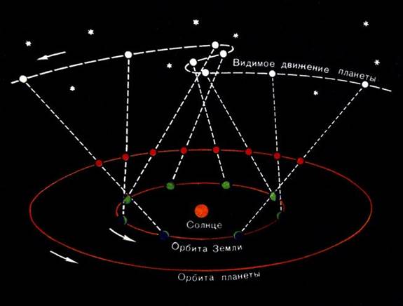 Задание #5 Вопрос: Планета с древне-греческого - «странник», она может начать двигаться попятно, может даже описывать петли на фоне далеких звезд, вызывая суеверный ужас. Чем вызвано такое необычное их движение? Попятное движение планет на фоне далеких звезд вызвано: Изображение: