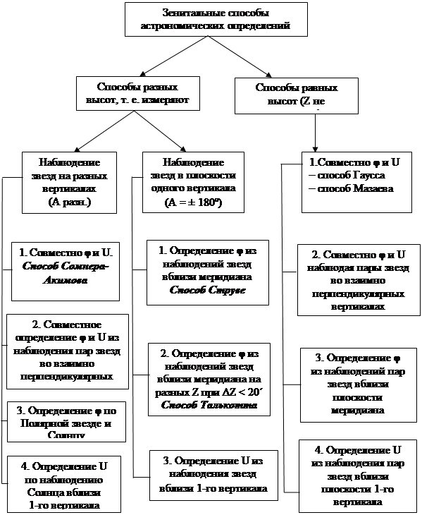 Классификация зенитальных способов астрономических определений