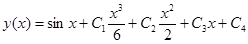 Повторяя эту операцию ещё (n-1) раз, получим y(x). Пример. Решить дифференциальное уравнение Проинтегрируем данное уравнение 4 раза: