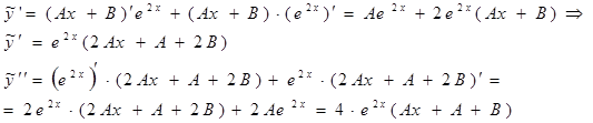 4е2х(Ах +А +В)- е2х(2Ах + А +2В)-6е2х(Ах + В) =(2х -1) е2х;