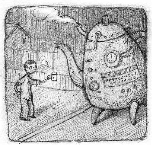 Несколько часов спустя ждать на крыльце, пока приедет кофе-машина…