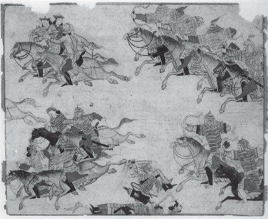 Монгольская конница преследует противника. Средневековая персидская миниатюра