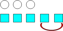 - - Положите три круга, а внизу положите на 2 квадрата больше. Сколько вы положили квадратов? Как вы выкладывали квадраты?