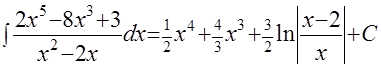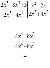 Пример 9. Рецепт. Здесь порядок полинома числителя больше порядка полинома знаменателя, поэтому делим «столбиком» числитель на знаменатель: