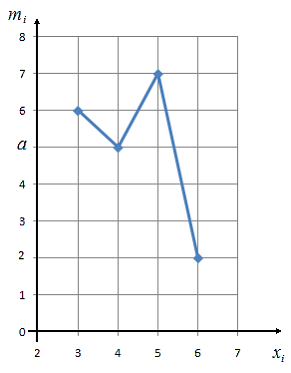 На графике представлен полигон частот статистического дискретного ряда распределения. Определите параметр a, если объем выборки n =20