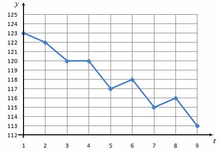 На рисунке представлен график временного ряда количества больных обратившихся в поликлинику с ОРВИ за последние 9 дней. Найдите абсолютный прирост числа больных за 9 дней