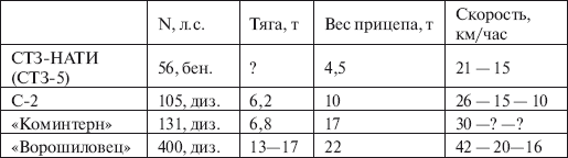 Теперь сравним цифры, указанные в таблице, с весом наиболее распространенных артсистем. Как известно, самыми тяжелыми орудиями, которые стояли на вооружении стрелковых, моторизованных и танковых дивизий Красной Армии, были 152‑мм гаубицы и 85‑мм зенитные пушки. Вес той и другой систем находился в диапазоне 4,5–4,3 т. Таким образом, даже самый простой и дешевый СТЗ‑5 мог обеспечить буксировку любых систем дивизионной артиллерии. На вооружении корпусных артполков наряду со 152‑мм гаубицами стояли значительно более тяжелые системы: 122‑мм пушка А‑19 (вес 7,8 т) и 152‑мм пушка‑гаубица MЛ‑20 (7,9 т). Для буксировки орудий такого веса на Челябинском тракторном заводе был разработан и запущен в серийное производство мощный дизельный тягач С‑2. Тяговые характеристики этой гусеничной машины обеспечивали буксировку практически всех орудий дивизионной и корпусной артиллерии, а также эвакуацию подбитых легких танков. Несмотря на то что выпуск С‑2 пришлось прекратить уже в 1942 году (производственные мощности Челябинского завода были переведены на массовый выпуск танков), надежные и мощные тягачи этого типа простояли на вооружении советской артиллерии до начала 50‑х годов. В артполках и отдельных дивизионах большой и особой мощности РГК использовались орудия совсем другой «весовой категории»: 203‑мм гаубица Б‑4 (19 т), 152‑мм пушка Бр‑2 (19,5 т), 280‑мм мортира Бр‑5 (19,7 т), 305‑мм гаубица Бр‑18 (45,7 т). Эти системы метали снаряды весом от 100 до 330 кг, и их использование планировалось главным образом для разрушения железобетонных дотов. Относительно массовой среди всей этой артиллерийской экзотики была только 203‑мм гаубица Б‑4 (871 единица), но и она никак не предназначалась для совместных действий с механизированными соединениями. Тем не менее созданные для буксировки тяжелых артсистем гусеничные машины сыграли важную роль и в деле формирования новых механизированных корпусов, так как их высокие тяговые характеристики позволяли использовать артиллерийские тягачи для эвакуации с поля боя подбитых танков. Наиболее распространенным тяжелым гусеничным тягачом был «Коминтерн», выпускавшийся на Харьковском паровозостроительном заводе № 183 им. Коминтерна (да‑да, именно так назывался крупнейший танковый завод мира). Оснащенный 130‑сильным двигателем, тягач развивал скорость до 30 км/час по шоссе и имел запас хода 220 км. На предельно низкой передаче (при скорости 2,6 км/час) «Коминтерн» мог тащить тяжелые артсистемы на подъеме до 40 угловых градусов. О надежности и ремонтопригодности этой машины можно судить по тому, что с 1 сентября 1942 г. и по конец войны было безвозвратно потеряно всего 56 тягачей этого типа! (17) В 1940 г. производство «Коминтернов» было свернуто, и высвободившиеся производственные мощности завода № 183 были задействованы для серийного производства «Ворошиловца» – гусеничного тягача с уже совершенно феноменальными тактико‑техническими характеристиками. Основой конструкции был 400‑сильный танковый дизельный двигатель В‑2 (ни один немецкий тягач или танк того времени не имел двигатель такой мощности). Без прицепа тягач развивал на шоссе скорость 42 км/час и имел запас хода 390 км, с полной нагрузкой – 20 км/час и 240 км. Другими словами, «Ворошиловец» способен был в течение одного светового дня и на одной заправке топлива переместить тяжелую гаубицу 