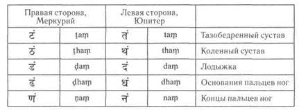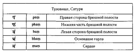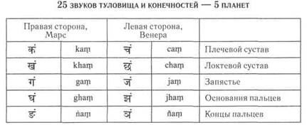 Санскритский алфавит состоит из пятидесяти «первомантр», рассматриваемых как «матери», или корневые силы, которым вся вселенная обязана своим происхождением. У них есть особые соответствия с планетами и знаками, как указано ниже.