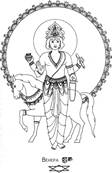 Юпитер Пандит — служитель Юпитера был человеком рослым и тучным. На вид он был добродушным весельчаком, но мудрость его была поистине глубока, а суждения — столь же справедливы. И как ни оскорбительно было ему слушать упрёки, которыми только что осыпали здесь Юпитера, он невозмутимо промолвил; — Главная причина, по которой Юпитера должно считать более великим, нежели Меркурия, — это то, что Меркурий двуличен. Как истинный царедворец, Меркурий являет свои благоприятные стороны, соединяясь с благоприятными планетами. В окружении же пагубных планет он проявляет зловредные качества. Юпитер намного превосходит его, ибо он — самая благотворная из Девяти Планет. Лишь необычайные обстоятельства могут заставить его совершить неблаговидный поступок. Индра и все небожители подчиняются его власти, почитают его как своего учителя и наставника и следуют его советам. Тот, кто преданно служит Юпитеру и постоянно возносит ему молитвы, освобождается от всех скорбей, и все его заветные желания сбываются. Поистине Юпитер достоин поклонения, ибо преисполнен милосердия и мудрость его необычайно глубока. У него широкая, выпуклая грудь и внушительный живот. Голос его подобен львиному рыку, кожа смугла, глаза золотисто-карие, а волосы блестят, как чистое золото. В его конституции преобладает каппха-доша. Он обожает сладости, носит желтые одежды и украшает себя гирляндами из желтых цветов. Будучи брахманом, Юпитер в совершенстве знает все Веды и искушён во всех науках. Он скромен, милосерден и счастлив, умеет обуздывать свои чувства и ум, разум же его поистине утончён. Он следует путём праведности, соблюдая ритуалы. Его металл — золото, а драгоценный камень его — топаз. В теле человека он властвует над жировой тканью. Он — Хранитель северо-востока, его день недели — четверг, а из созвездий ему подчиняются Стрелец и Рыбы. Юпитера почитают как покровителя богослужений и великого Гуру. Его называют Учителем бессмертных богов. Душой, Советником, Владыкой красноречия, Золотым владыкой. Творцом, Неотразимым, Носящим желтые одежды, Юным, Достойным поклонения всего мира. Сострадательным, Создателем государства. Освобождающим от гнета и Миролюбивым. Отцом Юпитера был Ангирас — сын Брахмы. Однажды при виде прелестных апсар ( божественных танцовщиц ) в Брахме вспыхнуло страстное желание, и семя его изверглось. Из огня, в который упало семя, родились Маричи, Бхригу, Ангирас и другие риши. Ангирас получил своё имя от того, что родился от раскалённых углей ( ангара ). Не кто иной, как он, впоследствии наложил заклятие, приведшее к рождению могучего Ханумана. Восемь сыновей, среди которых был и Юпитер, родила Ангирасу его супруга Шраддха. Вот почему некоторые называют Юпитера сыном бога огня: они имеют в виду огонь, воплощённый в Ангирасе. Пройдя суровые испытания. Юпитер завоевал себе место гуру среди богов и в этом высоком звании обратил все силы свои на благо небожителям, препятствуя замыслам асуров. Однажды Венера, гуру асуров, удалился в Гималаи и в течение тысячи лет предавался подвижничеству в честь владыки Шивы, дабы открылся ему способ погубить дэвов. Индра же отправил свою дочь Джаянти обманом выведать у Венеры эту тайну. Джаянти стала ученицей и прислужницей Венеры и прожила с ним много лет, до тех пор, пока он не узнал нужных заклинаний. Увидев, что он соб