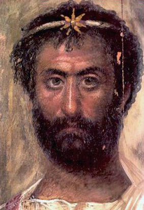 Это изображение жреца Сераписа, которого можно узнать по характерной семиконечной звезде на его диадеме, а также трем прядям волос под ней. Семиконечная звезда – один из символов Сераписа. Сераписа называли Теон Гептааграммотон - бог с именем из семи букв. Портрет этот сейчас висит на стене Британского Музея. Чтобы вы лучше представили ту эпоху, время перемен, момент перезагрузки матрицы, я не удержусь от того чтобы дать еще один портрет: