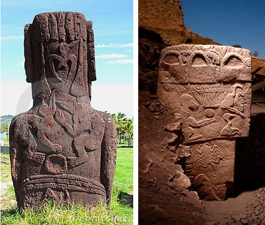 Понятно, в этом случае, ни о какой «астрономической обсерватории» никто из ученых пока даже не заикается. Объект находится в стадии раскопок, но можно быть совершенно уверенными, что исследователи впоследствии обнаружат массу привязок к сторонам света, созвездиям, временам посева и сбора урожая и т.п. Несмотря на огромную временную разницу можно легко вычленить сходные черты этих объектов, вплоть до изображений на них. Стилистика их сходна: обычно это рельеф из которого в камне на глубину до десятка сантиметров полностью выбирался фон – очень трудоемкая техника, требующая много времени и усилий, учитывая что из инструментов (так считается) у ваятелей в лучшем случае было только медное зубило, которое почти всегда было мягче камня им обработанного. Кое-кто из ученых отказывает людям неолита и в медном зубиле. Дескать, брали один камень и стучали им по другому, высекая красивые узоры.