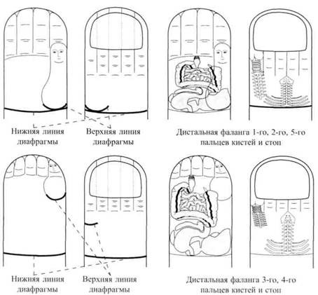Рис. 23. Расположение мини‑систем соответствия телу на дистальных фалангах пальцев кистей и стоп