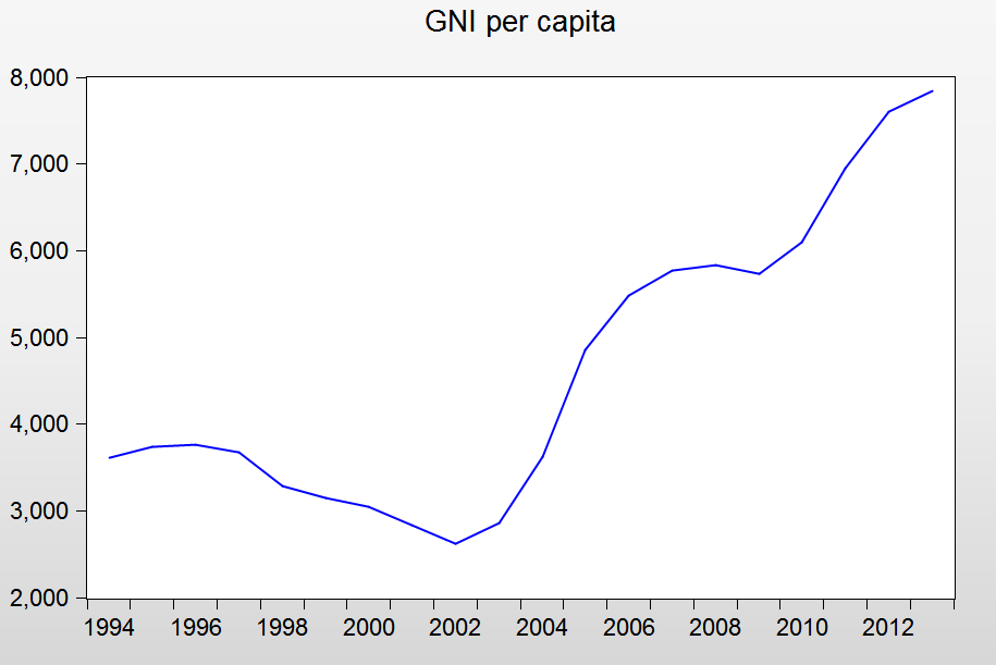 Рис. 4 – график уровня валового национального дохода на душу населения в 1994-2013 гг.
