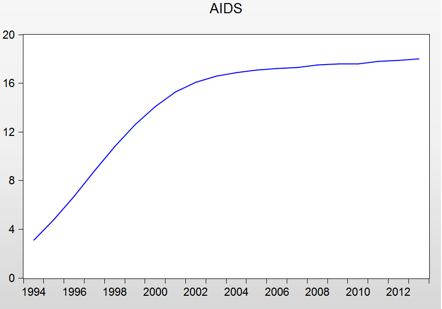 Рис. 6 – график процента больных ВИЧ/СПИД в 1994-2013 гг.