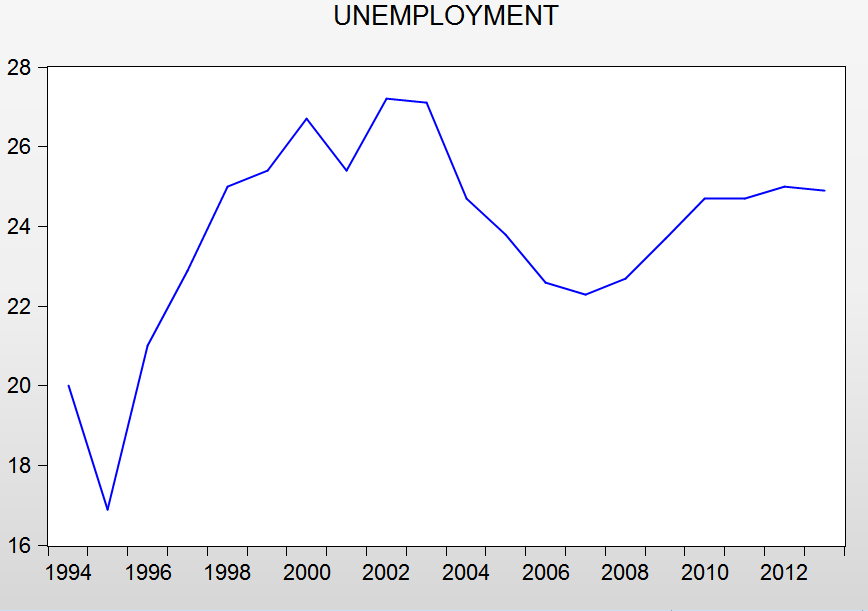 Рис. 8 – график уровня безработицы в 1994-2013 гг.