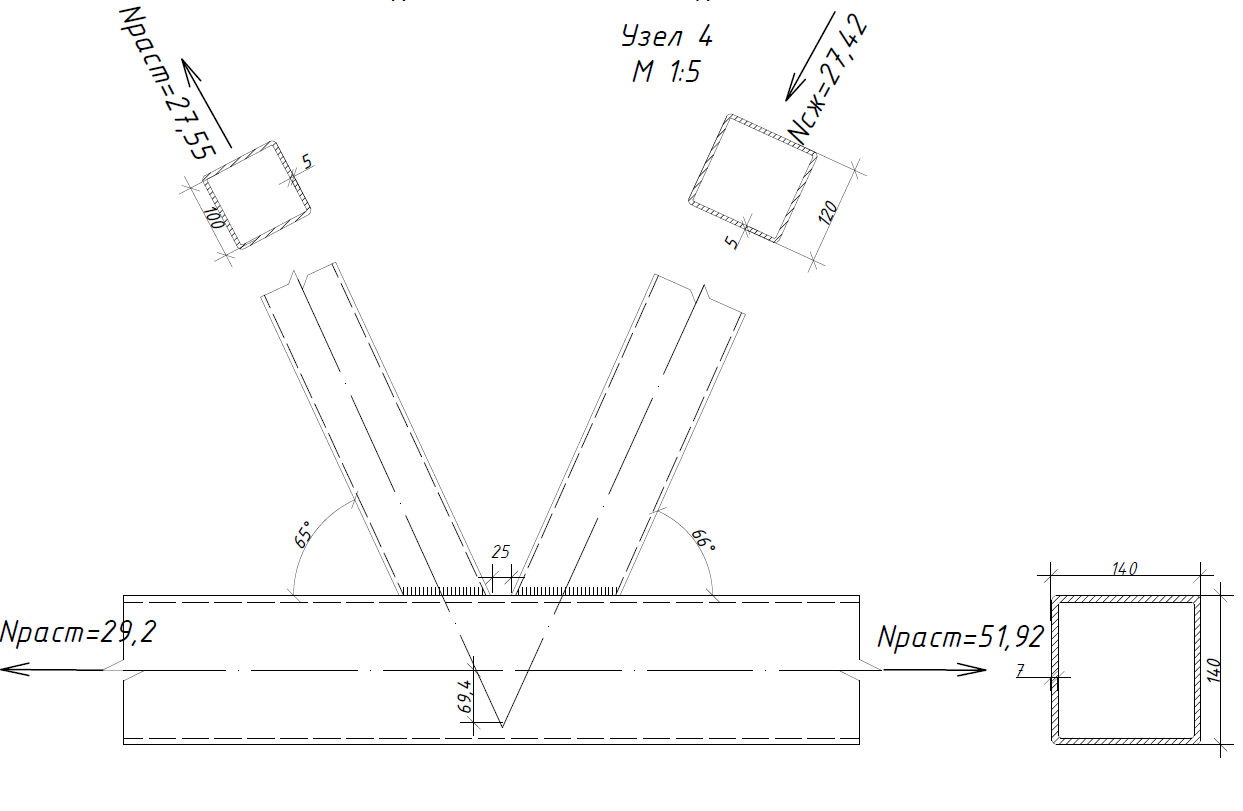 Проверка несущей способности пройдена, сечение НП остается прежним 140*140*7 и раскоса 3 100*100*5.