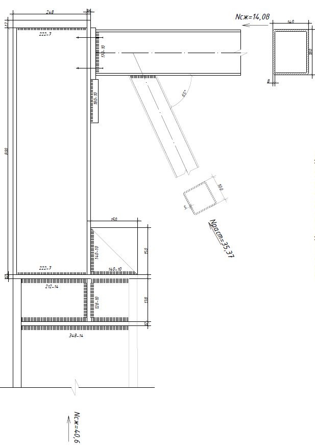 Проверка несущей способности пройдена, сечение НП остается прежним 140*140*7 и раскоса 1 100*100*5.