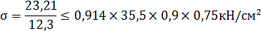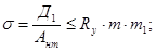 де m та m1 – коефіцієнти умов роботи (m = 0.9; m1 = 0.75); Абр та Ант – площі брутто та нетто перерізу кутиків діагоналей зв’язок за сортаментом: