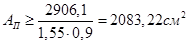 де Rв – розрахунковий опір бетону підферменної подушки; Rв = 15,5 Мпа = 1,55кН/см2; ап та вп – розміри опорної плити в поздовжньому та поперечному напрямках; РІ – навантаження на одну опорну частину; при двох фермах це навантаження визначається за формулою