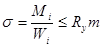 де - коефіцєнт, яким враховуються пластичні деформації Wi – моменти опору для розрахункових перерізів балансира; Ry – розрахунковий опір для матеріалу опорних частин; Ry = 205 Мпа; для перерізу І – І