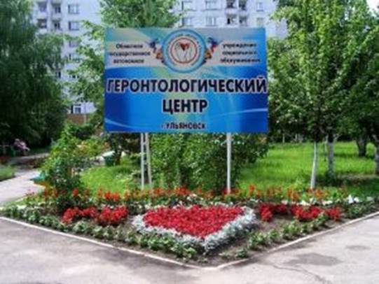 «Геронтологический центр в г. Ульяновске» Учреждение создано распоряжением Главы администрации Ульяновской области 3 апреля 1967 года. Основная цель деятельности – предоставление социального обслуживания гражданам старших возрастных групп в условиях стационара, результатом которого является продление активного долголетия и сохранение жизненного потенциала указанной категории граждан. Формы предоставленияния социальных услуг:
