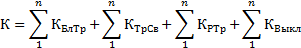 Определение капитальных вложений. К экономическим показателям относят: капиталовложения – К, приведенные годовые затраты – З и издержки – И. При сравнительном анализе технико-экономических показателей различных вариантов структурных схем проектируемой электрической станции учет капиталовложений и годовых эксплуатационных издержек, производится только для тех элементов схем, которыми отличаются сравниваемые варианты. Капиталовложения для всех остальных элементов схем в этом случае не учитываются. В капиталовложения включают стоимости блочных трансформаторов, трансформаторов связи и резервных трансформаторов СН, выключателей на генераторе и на высокой стороне, т.е. капиталовложения определяются по формуле: