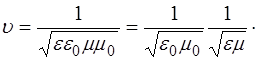 Тогда скорость волны в веществе с учетом скорости волны в вакууме будет равна:
