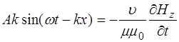 Найдем связь между мгновенными значениями элект-рической и магнитной компоненты электромагнитной волны. Для этого продифференцируем Продифференцируем (8.50) по координате