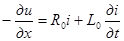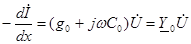 Пусть напряжение и ток в начале такого элементарного четырехполюсника равны Разность напряжений в начале и конце участка определяется падением напряжения на резистивном и индуктивном элементах, а изменение тока на участке равно сумме токов утечки и смещения через проводимость и емкость. Таким образом, по законам Кирхгофа