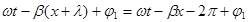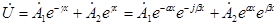 Аналогичное уравнение согласно (6) можно записать для тока. Слагаемые в правой части соотношения (7) можно трактовать как бегущие волны: первая движется и затухает в направлении возрастания х, вторая – убывания. Действительно, в фиксированный момент времени каждое из слагаемых представляет собой затухающую (вследствие потерь энергии) гармоническую функцию координаты х, а в фиксированной точке – синусоидальную функцию времени.