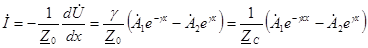 где в соответствии с (5) Представление напряжения в виде суммы прямой и обратной волн согласно (10) означает, что положительные направления напряжения для обеих волн выбраны одинаково: от верхнего провод Аналогично для тока на основании (6) можно записать