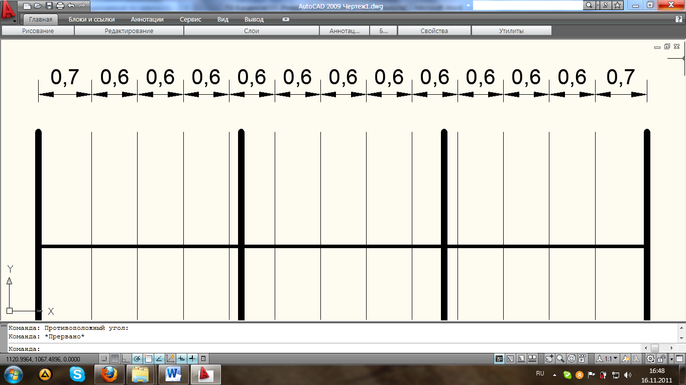 Визначаємо кількість шагів в балках настилу п = Г/0,6 = 8/0,6=13,33 приймаємо п = 13 Визначаємо а = Г/13 = 8/13=0,61 – приймаємо 0,6 м. Визначаємо а 1 = (8 – 0,6 * (13 – 2))/2 = 0,7 м.