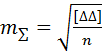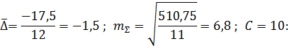 [∆]=-17,5 [∆∆]= [δ]=-0,5 [δ δ]=510,75 Якщо де п – кількість вимірів, заповнюють у таблиці 1.4. колонку 6 і використовують для обчислень формулу: