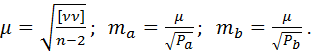 Знайшовши а та b, записати у числовому вигляді робочу формулу, за якою будуть визначатися похибки позначок. Одночасно обчислюємо ваги Р a, Р b величин а та b: