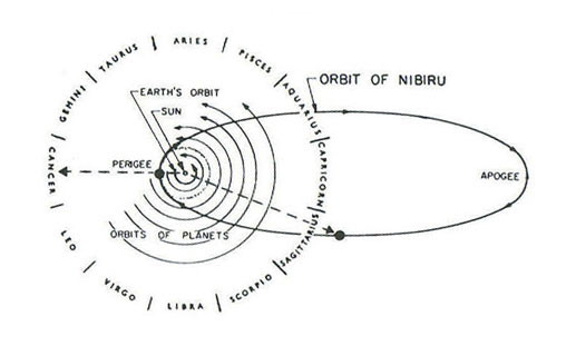 Прохождение Нибиру Какова протяженность орбиты Нибиру и почему она не появлялась в наше время? По мнению Ситчина, ответ на этот вопрос заключается в шумерском слове SAR, которым иногда обозначают Нибиру. Слово SAR означает Верховный правитель и ассоциируется с высшим божеством Ану, но это слово означает одновременно число 3600 и изображается большим кругом. В ином контексте это слово приобретает значение Завершенный цикл. Основываясь на этом, а также на других подтверждающих фактах, Ситчин пришел к заключению, что продолжительность движения Нибиру по орбите составляет 3600 земных лет и перигелием, близким к Поясу Астероидов. Этим объясняется то, что планета Нибиру не появлялась в последнее время.