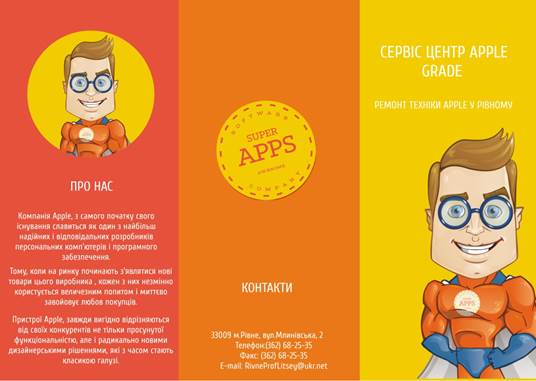 У мене вийшов ось такий загальний дизайн титульної сторони буклету: