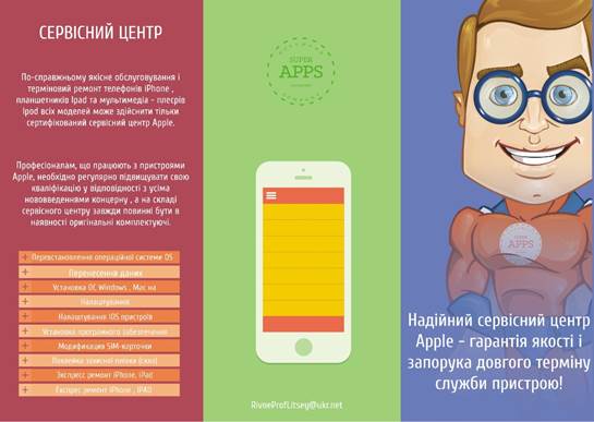 В результаті виконання даної дипломної роботи я навчився створювати Буклет в програмі Adobe Photoshop. Фотошоп (PhotoShop) - це графічний растровий редактор. Продуктивність. Ілюстратор, своїм розмаїттям інструментів підштовхує саме «малювати» веб-сайт, коли його необхідно просто верстати. Таким чином, думаєш не про красивостях, а саме про те, про що потрібно. Швидкодія. Индизайн літає навіть при десятку сторінок, з великою кількістю зображень. Ілюстратор в таких умовах буде гальмувати. Многостраничность Ілюстратора — ненатуральна, а в Индизайне — справжнісінька. Ідентичність браузеру. Индизайн рендерить шрифти дуже близько до браузера (тільки трохи світліше). Підтримка шаблонів сторінок, на основі яких базуються інші сторінки). Внесення змін до шаблону моментально відбивається на всіх страницых, заснованих на ньому. Спільна робота. Индизайн дозволяє одночасно працювати декільком фахівцям над проектом (коли над проектом одночасно працює дизайнер, ілюстратор і технічний дизайнер). Все швидко підключається, змінюється і приводиться до остаточного вигляду. Використання стилів. Можна задати стиль тексту для посилань головного меню, заголовків, параграфів і т. п. Дублікати сторінок. Дуже зручно створювати кілька варіантів дизайну, щоб вибрати найкращий. Для цього достатньо скопіювати існуючу сторінку і спокійно вносити необхідні зміни, не створюючи окремий файл.