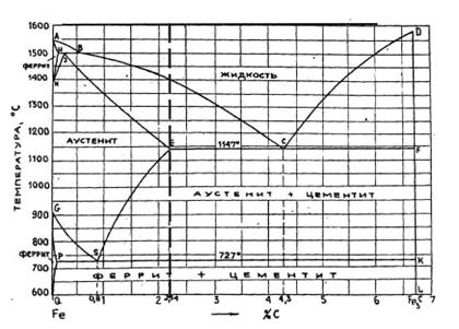 Формирование структурных составляющих углеродистых сталей в равновесном состоянии определяется левой частью диаграммы состояния системы железо-цементит; содержание углерода менее 2,14% (рисунок 2.1.). Рисунок 2. 1 – Диаграмма состояния системы железо-цементит