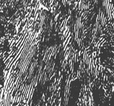 При кристаллизации из жидкого состояния во всех сталях образуется аустенит. При дальнейшем охлаждении структурные составляющие сталей получаются различные. В зависимости от содержания углерода (С) различают следующие виды сплавов: техническое железо (меньше 0,02% С); доэвтектоидные стали (от 0,2% до 0,8% С); эвтектоидная сталь (0,8% С); заэвтектоидные стали (от 0,8% до 2,14% С). Формирование структурных составляющих при охлаждении технического железа определяется значением линий: GS – начало выделения феррита из аустенита; GP – конец выделения феррита из аустенита; PQ – начало выделения цементита из феррита. Растворимость углерода в α-железе переменная (рисунок 2.1, линия PQ). При 727˚С в α-железе растворяется 0,02% С, а при комнатной температуре 0,006% С. Сплавы железа с содержанием до 0,006% С имеют структуру только твёрдого раствора углерода в α-железе, т.е. феррита (рисунок 2.2). В сплавах с содержанием от 0,006 до 0,02% С при понижении температуры из феррита выделяется цементит, называемый третичным. Третичный цементит выделяется по границам зерен феррита (рисунок 2.3). Формирование структурных составляющих при охлаждении доэвтектоидных сталей определяется значениями линий: GS – начало выделения феррита из аустенита; PSK – эвтектоидное превращение, аустенит распадается одновременно на две фазы: феррит и цементит, которые вместе образуют структурную составляющую перлит. Перлит имеет пластинчатое строение (рисунок 2.4). Он состоит из чередующихся пластинок феррита и цементита (феррит – светлая пластинка, цементит – темная). Перлит под микроскопом имеет вид полей полосчатого строения или темных участков (при небольших увеличениях). Феррит выявляется в виде светлых полей (рисунок 2.5). Количество феррита и перлита в доэвтектоидной стали зависит от содержания углерода. С увеличением содержания углерода количество перлита увеличивается, феррита уменьшается. Формирование структурных составляющих при охлаждении в эвтектоидной стали определяется значением линии PSK – эвтектоидное превращение. Микроструктура эвтектоидной стали состоит из одного перлита (рисунок 2.6). Формирование структурных составляющих при охлаждении в заэвтектоидных сталях определяется значением линий: ES – начало выделения цементита из аустенита; PSK – эвтектоидное превращение. Цементит, выделяющийся из аустенита, называется вторичным. Он располагается в виде белой сетки по границам зерен, а внутри сетки – зерна перлита пластинчатого строения (рисунок 2.7). Чем больше углерода в заэвтектоидной стали, тем более массивной (толстой) получается цементитная сетка.