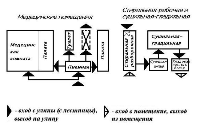 Рис.Схема взаимосвязи отдельных помещений детских дошкольных учреждений.